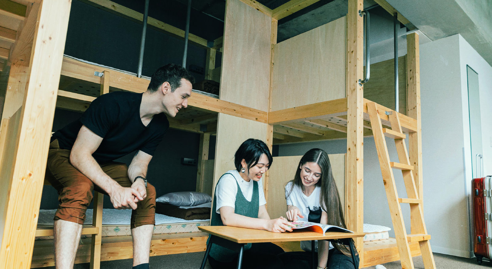 くつろぎと交流を生み出す旅人のためのホステルに国内外のゲストが自由に集まり、共に過ごす時間を楽しむことで、新たなコミュニティが自然に生まれます。